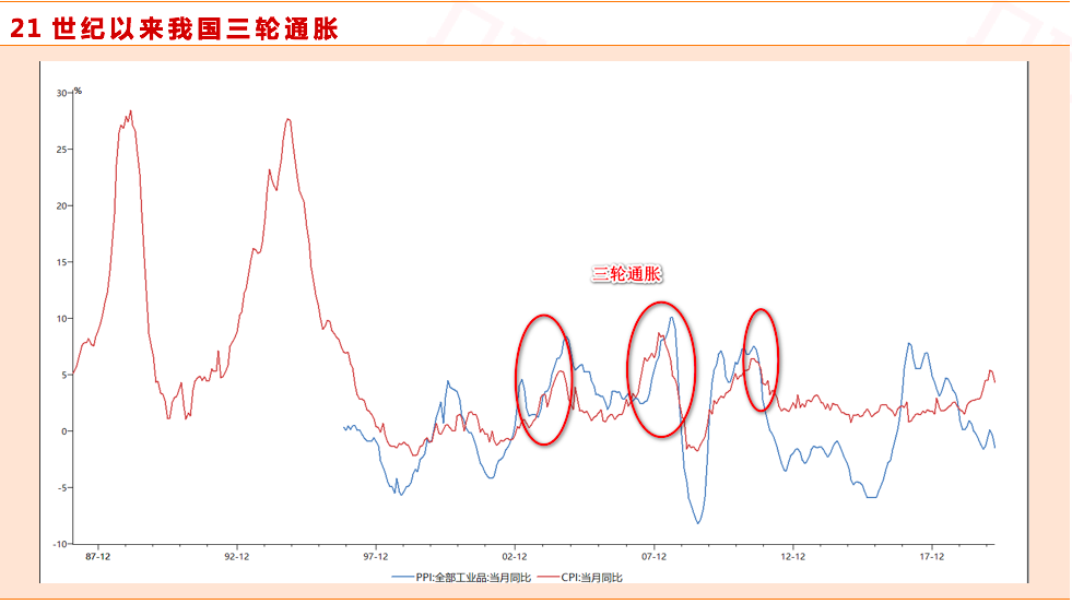 进入21世纪以来,我国在2004年、2007年和2011年分别发生过三轮明显的通货膨胀。