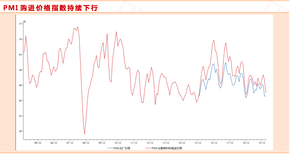 虽然目前全球都在释放流动性,但资金主要去向为实体经济,并未能进入居民手中,尚未提振消费。尽管3月通胀依旧在3%以上,但海外疫情的扩散进一步加剧了工业品去库存的压力。尽管4月9日OPEC+达成了减产协议,但全球需求的下滑大幅超过供给变化,二季度价格料进一步下行,工业品通缩压力积聚。另外由于出口供应链尚未恢复,影响近1.8亿就业人口,贸易部门需求减少会加剧劳动力收入降级,拉低服务业的平均价格。从PMI购进价格和出厂价格指数来看,18年中以来的下行趋势并未改变。