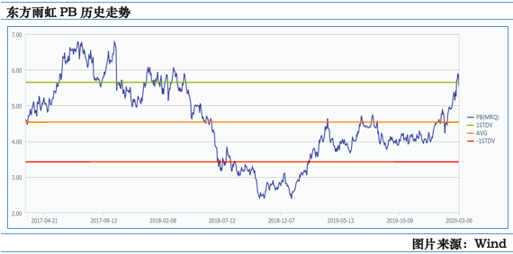 以东方雨虹为例,该公司是我国防水业务的龙头公司,防水主业目前市占率10%,并持续提升。随着防水行业格局优化,有望保持高增长;全国生产基地布局基本完善,后续产能扩张主要靠原有基地扩建产能,资本支出将呈现趋势性下滑,增长质量有望提高.其ROE过去5年平均21.3%,盈利能力优秀,在2018年底-2019年初的时候,其估值为历史低点,严重偏离历史平均值。符合我们PB-ROE的选股原理—ROE保持高且平稳,PB向下偏离。此时即为很好的投资时点。