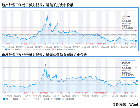 结合上图,并从市场的实际情况出发,我们都知道已经有大量银行股破净,确实被低估。此外,周期股(基建、地产)此前的PB均位于历史中位数下方,近期受到政策的刺激迎来估值修复行情也与这一分析相符合。