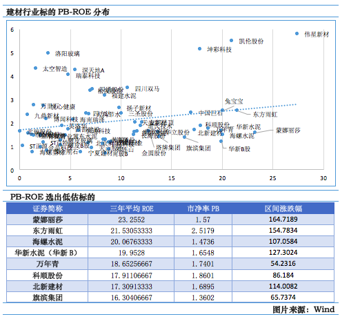 前文我们对PB、ROE指标以及PB-ROE估值模型做出了详细的说明,接下来我们将其应用于实践,以PB估值法更加适用于的地产、建材行业为例,对PB-ROE估值模型选股方法进行直观的解答: