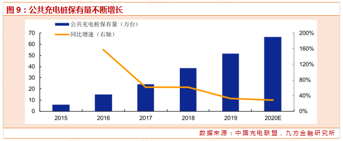 2019年新增的公共充电桩达到12.89万台。根据中国充电联盟预计,2020年预计新增将达到15万台,同时,私人桩也将新增约为20万台,公共充电场站新增8000座,新能源汽车充电桩的投资规模有望迎来扩大。