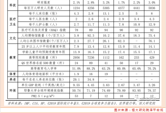 相比其他发达经济体,我国还有很多领域需要“补短板”,否则可能会限制“新经济”的发展空间和速度。据恒大研究院泽平宏观的数据,可以看到我国的交通、能源等虽然总量可观,但人均后的差距很大;通信覆盖率也明显落后;研发人员占比仍有数倍的差距;文化、教育、体育等人均资源严重不足等。