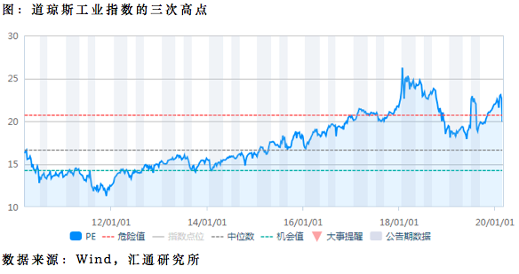 道琼斯工业指数近两年走出了三个高点,分别对应18年初、19年中旬和20年初。通过下图可以很明显的看出,道琼斯工业指数PE(TTM)超过21倍估值,就进入了危险区。上一次美联储降息,道指最高冲至22.92x,这一次冲到23.09x跌下来。以它目前的增速,20倍左右是可以稳住的,目前最新数据是20.4,所以从估值来看下跌空间也不大了。
