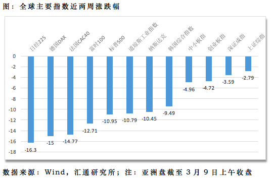 上周外盘继续暴跌,外围股市包括美国、欧洲、日韩等主要指数下跌幅度明显。我们此前在报告中,很明确的提出过结论,认为外围股市目前估值均处于20倍左右,且增速不及A股。而且疫情在多国蔓延,呈爆发态势,目前看不到疫情得以控制的迹象,因此认为疫情对其他国家影响大于目前已经处在合理控制期的中国。
