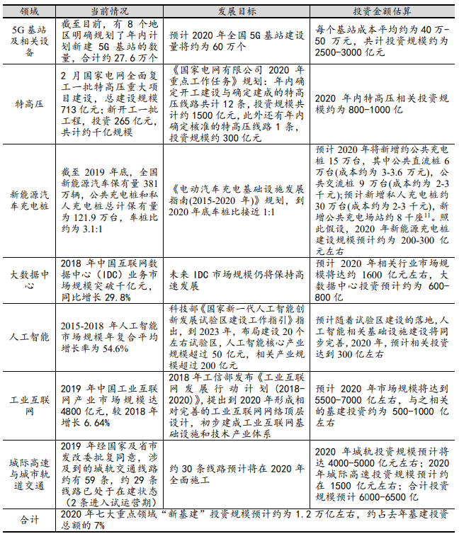 图2:七大“新基建”重点领域2020年投资规模估算 |