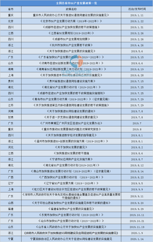 图3:2019-2020年全国各省市5G产业发展政策 |
