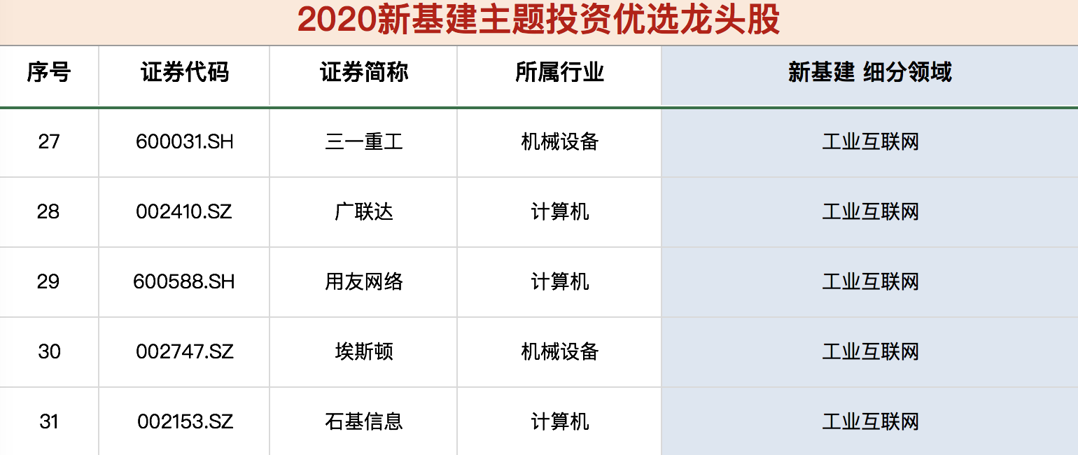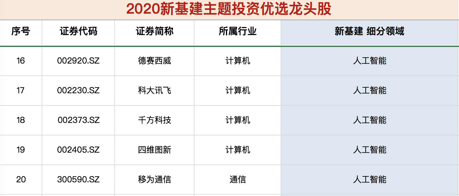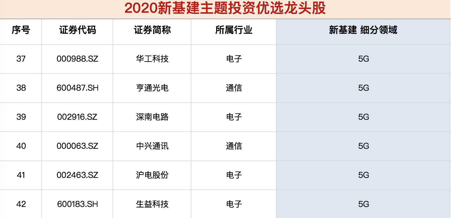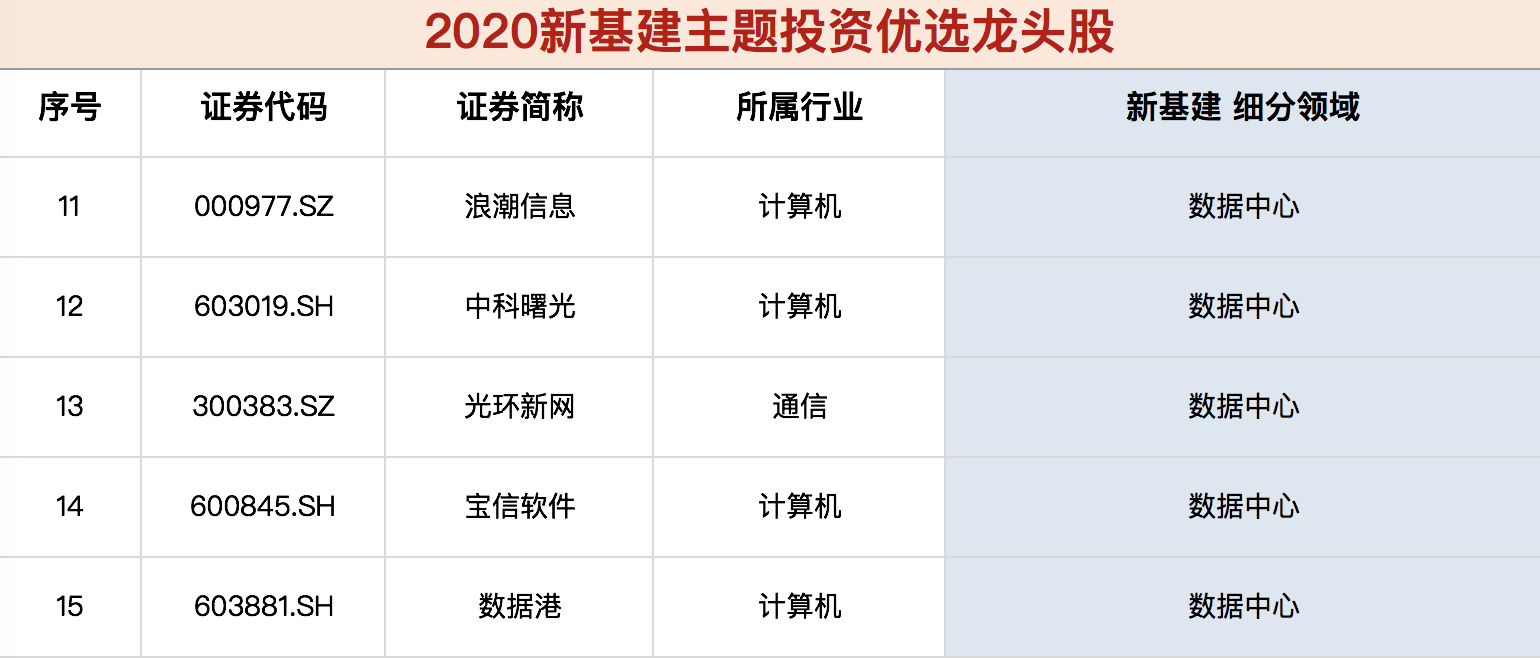 《新基建核心龙头股名单》