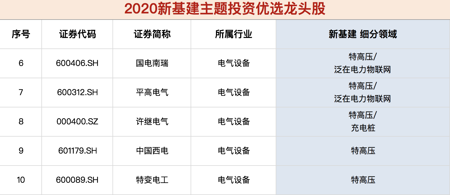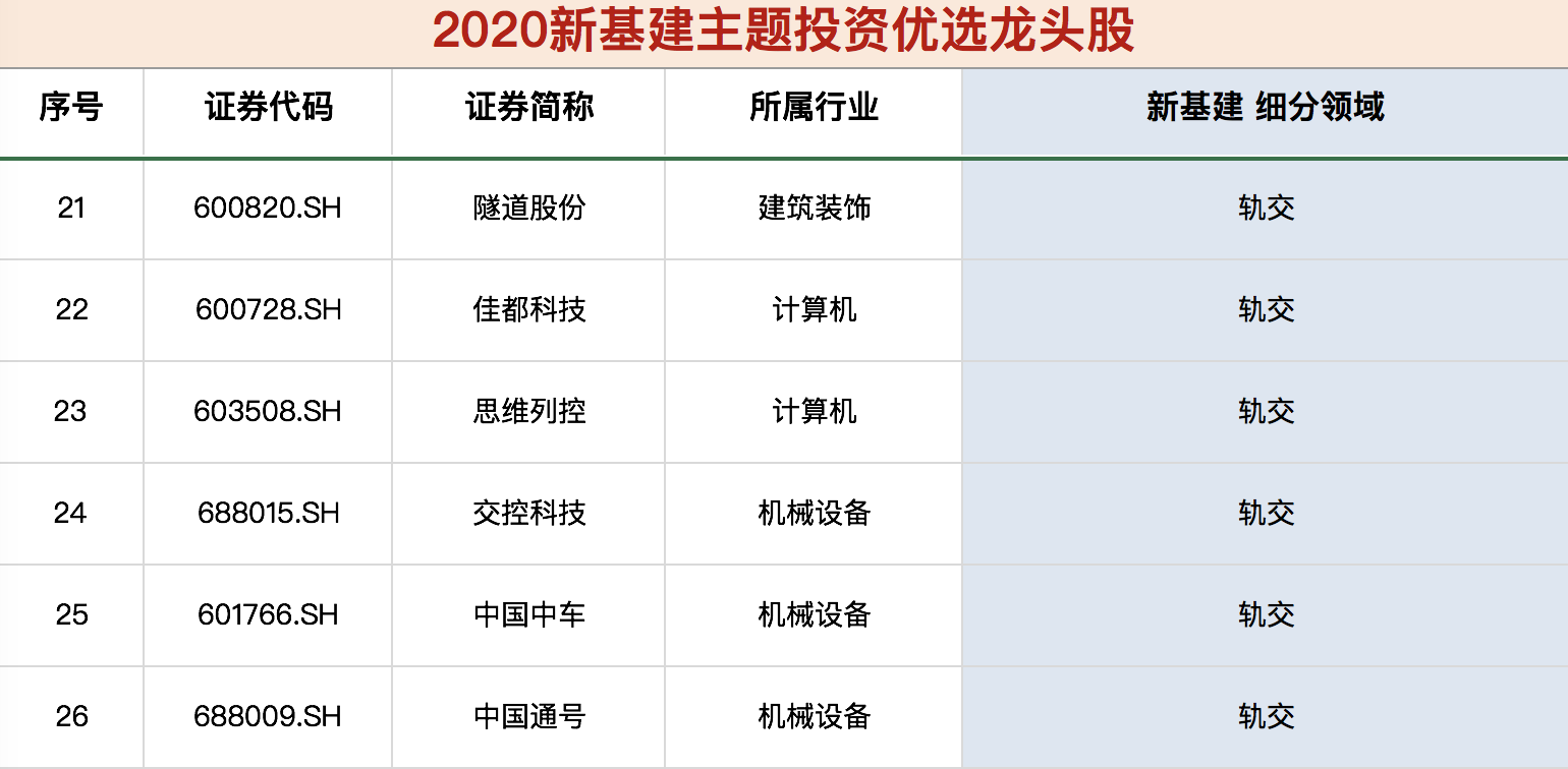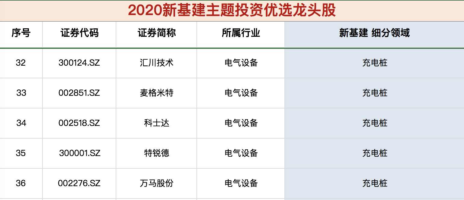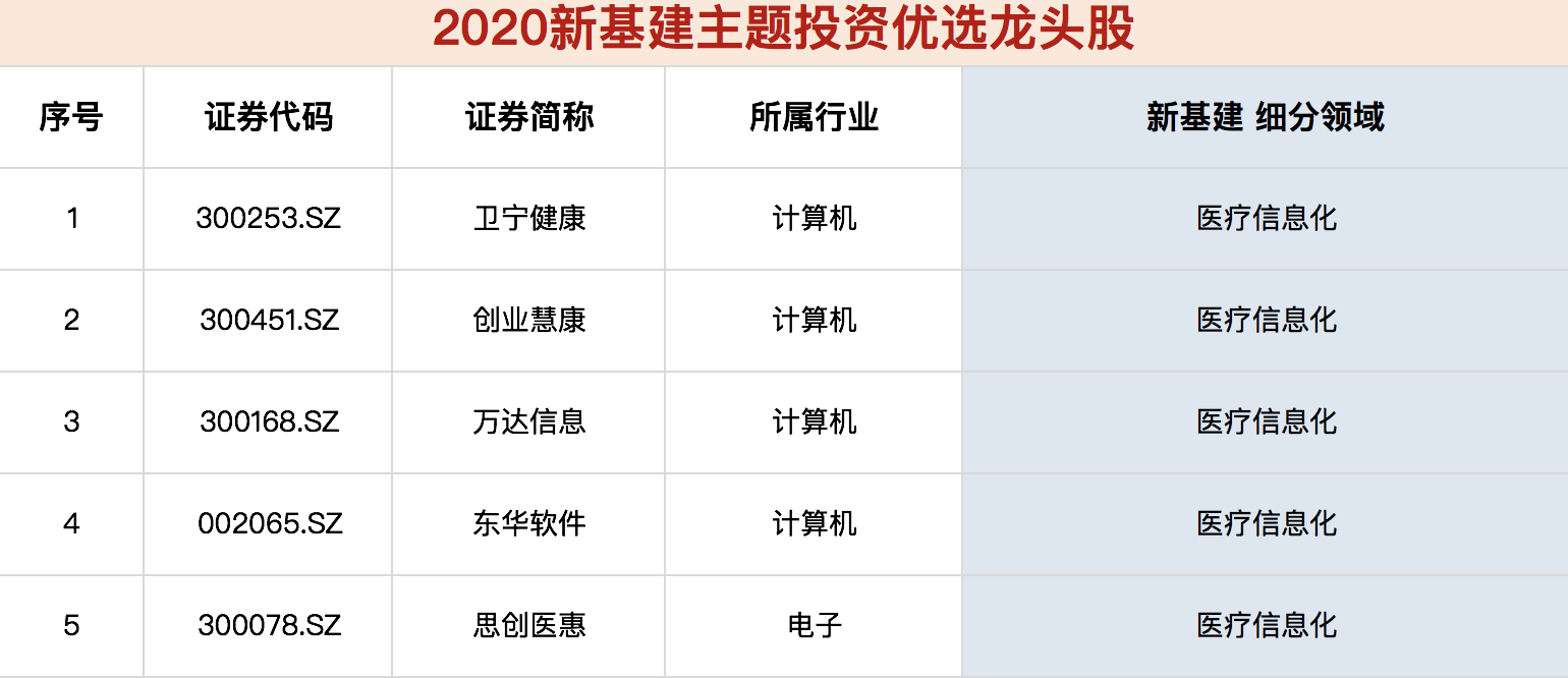 《新基建核心龙头股名单》